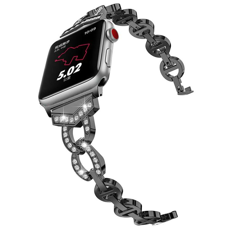 Correa de acero inoxidable con diamantes xDfind para Apple Watch de 42, 44, 45, 46 y 49 mm (negra)