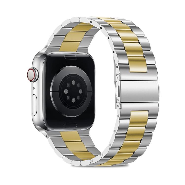 Correa de acero inoxidable con tres cuentas y película curva 3D para Apple Watch Series 10 de 46 mm (plata y dorada)