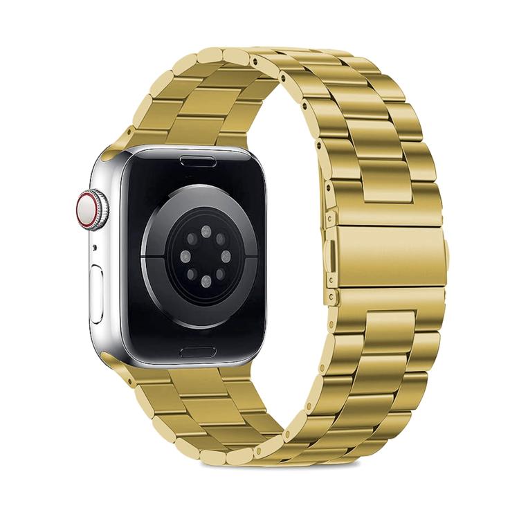 Correa de acero inoxidable con tres cuentas y película curva 3D para Apple Watch Series 42 mm (dorada)