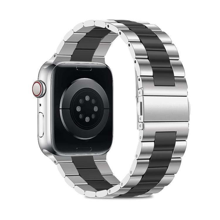 Correa de acero inoxidable con tres cuentas y película curva 3D para Apple Watch Series 44 mm (plateada y negra)