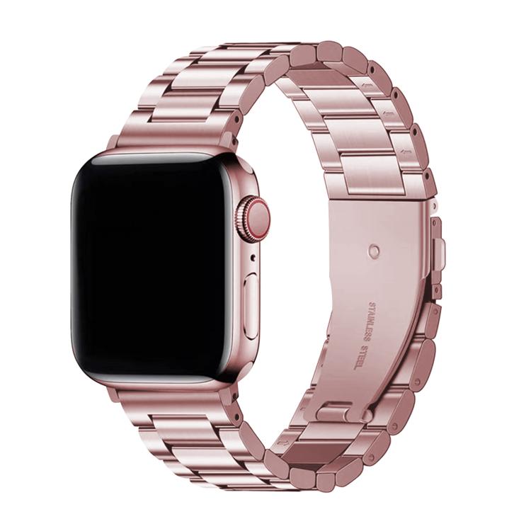 Correa de acero inoxidable con tres cuentas y película curva 3D para Apple Watch Series 44 mm (rosa)