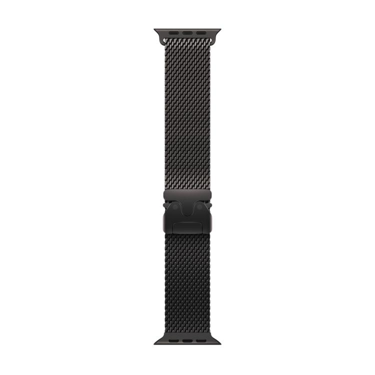Correa de acero inoxidable milanesa con hebilla de paraguas para Apple Watch Series 45 mm y película curva 3D (negra)