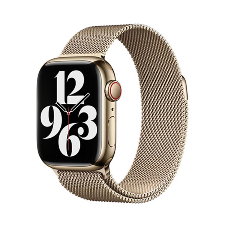 Correa de acero inoxidable milanesa con película curva 3D para Apple Watch Series 41 mm (dorada)