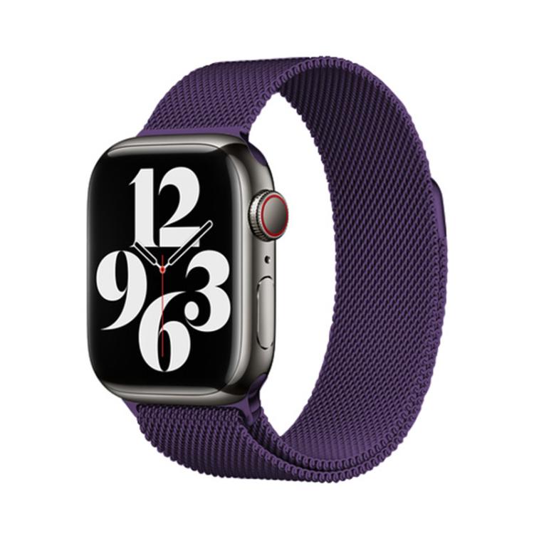 Correa de acero inoxidable milanesa con película curva 3D para Apple Watch Series 45 mm (morado)