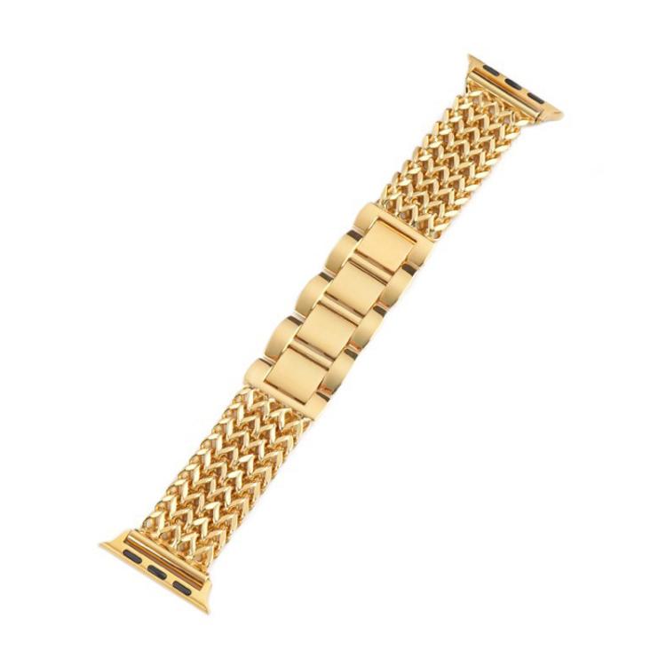 Correa de acero inoxidable trenzada con diseño de espiga de Dfind para Apple Watch 38/40/41/S10 de 42 mm (dorada)