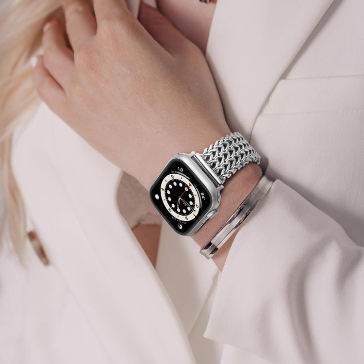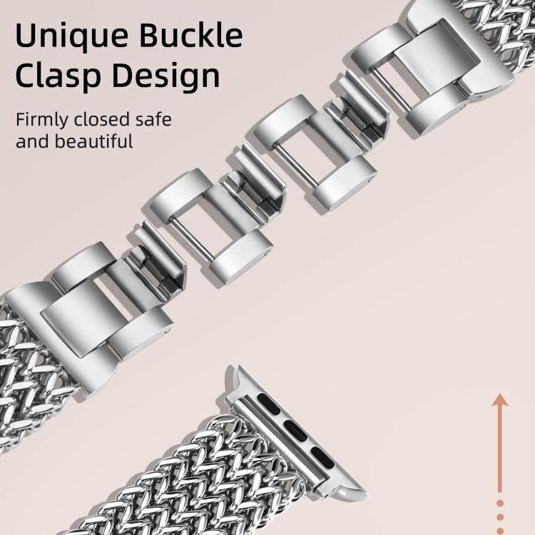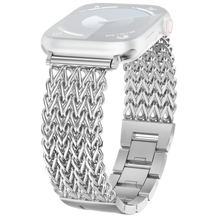 Correa de acero inoxidable trenzada con diseño de espiga de Dfind para Apple Watch 38/40/41/S10 de 42 mm (plateada)