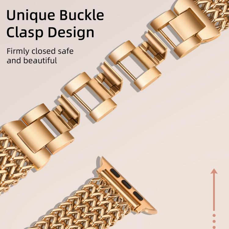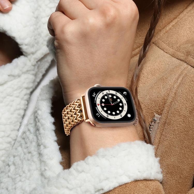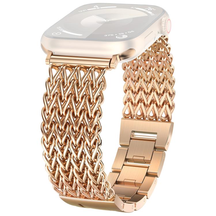 Correa de acero inoxidable trenzada con diseño de espiga de Dfind para Apple Watch de 38, 40, 41 y S10 de 42 mm (oro rosa)