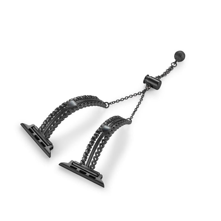 Correa de aleación de zinc con diseño de piedra blanca y amor para Apple Watch de 46 mm, 49 mm, 45 mm y 44 mm (negra)