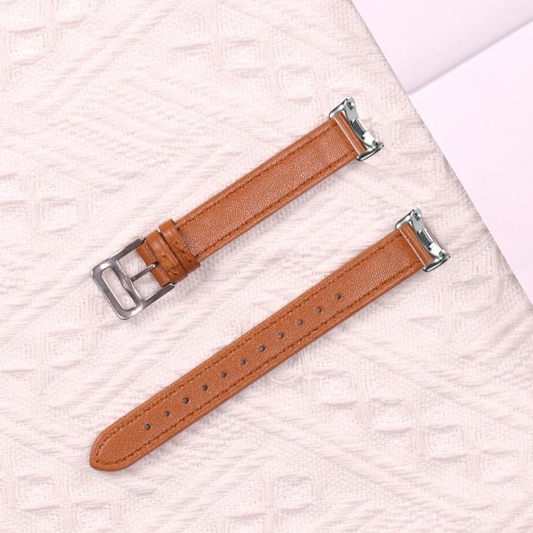 Correa de cuero con hebilla plateada fina para Xiaomi Smart Band 10/9/8 (textura de lichi, blanco marfil)