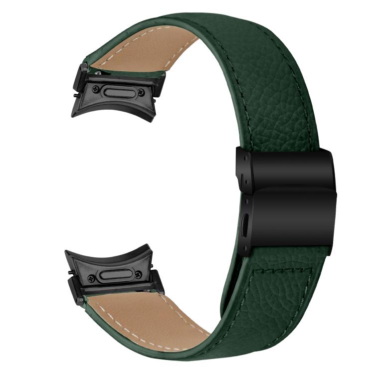 Correa de cuero con hebilla trasera de tortuga negra y textura de lichi de liberación rápida para Samsung Galaxy Watch 7 de 40/44 mm (verde)