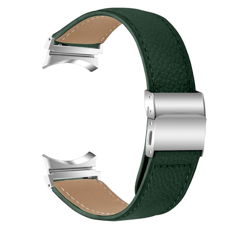 Correa de cuero con hebilla trasera de tortuga plateada con textura de lichi para Samsung Galaxy Watch 7 de 40/44 mm (verde)