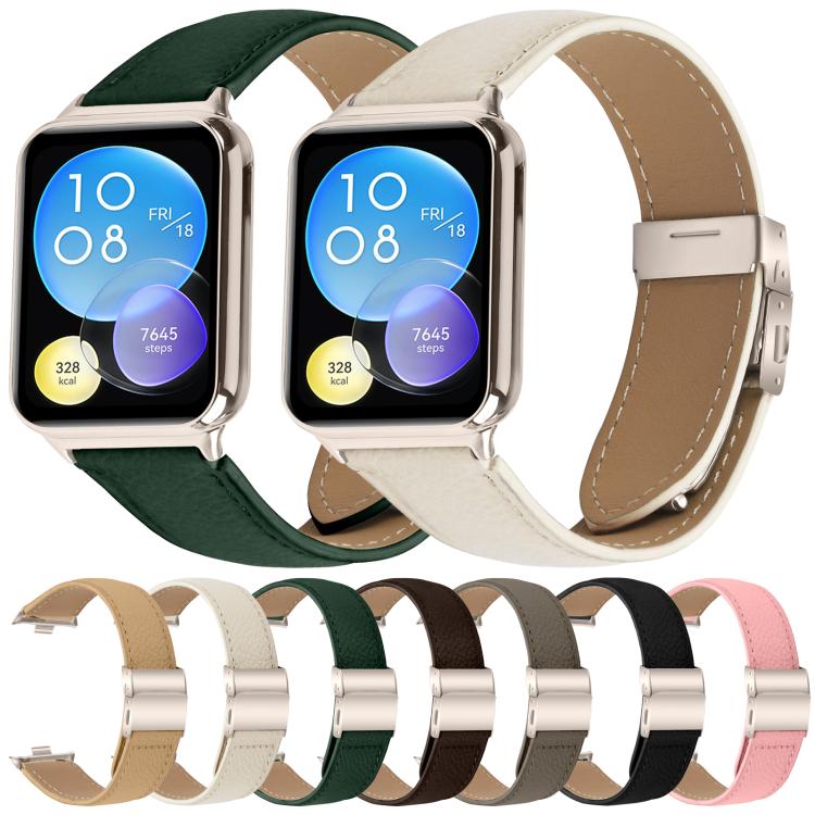 Correa de cuero con hebilla trasera de tortuga y textura de lichi para Xiaomi Smart Band 9 Pro y Redmi Watch 5 (rosa)