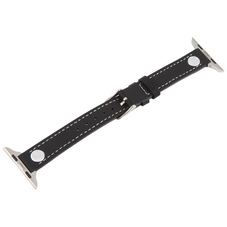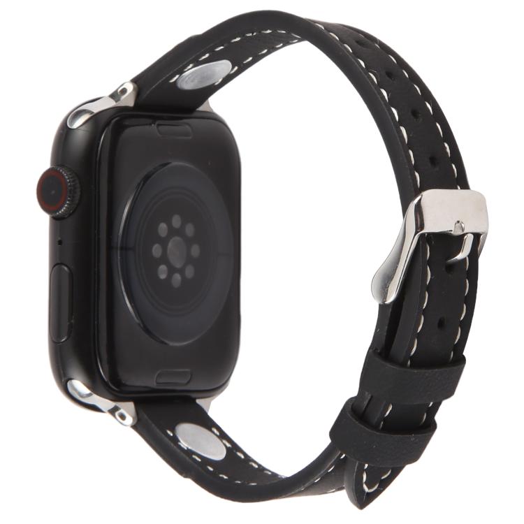 Correa de cuero de microfibra con remaches y tacto camelia para Apple Watch de 46 mm, 49 mm, 45 mm y 44 mm (negra)