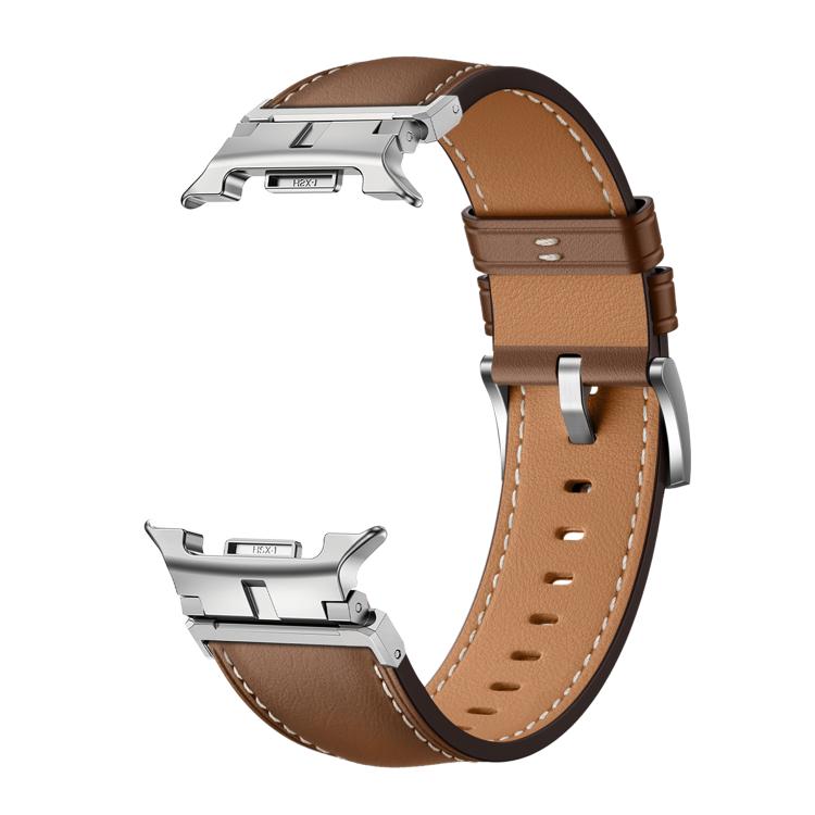 Correa de cuero genuino con conector de cabeza de metal clásico para Samsung Galaxy Watch8/Watch8 (marrón plateado)
