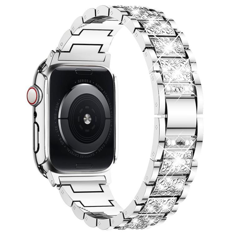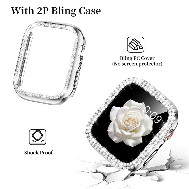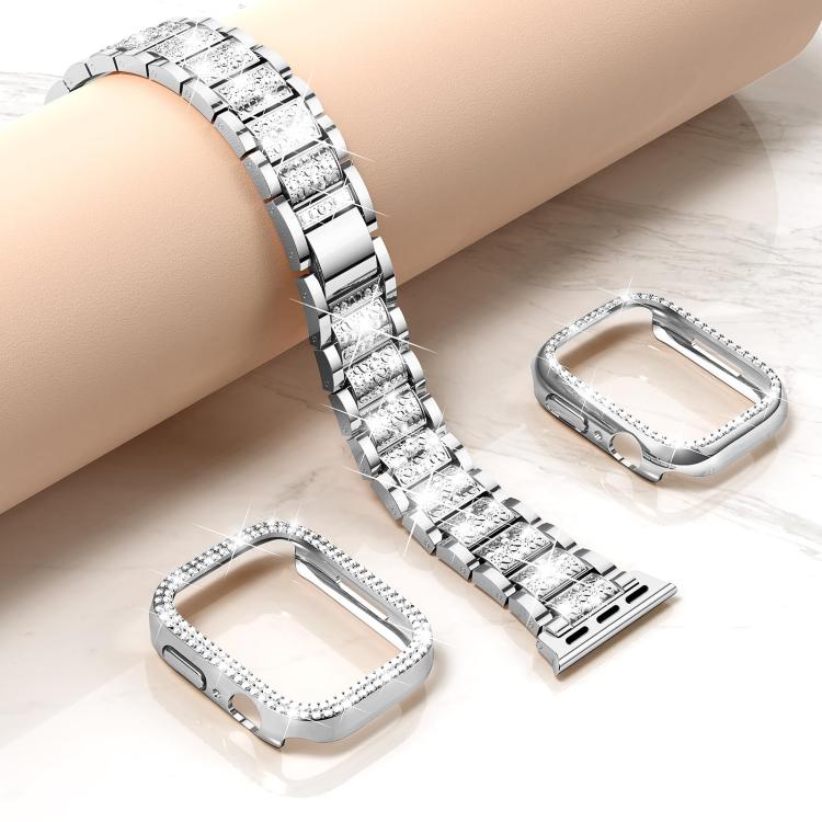 Correa de metal con diamantes y estuche para Apple Watch Series 10 de 42 mm xDfind (plateada)