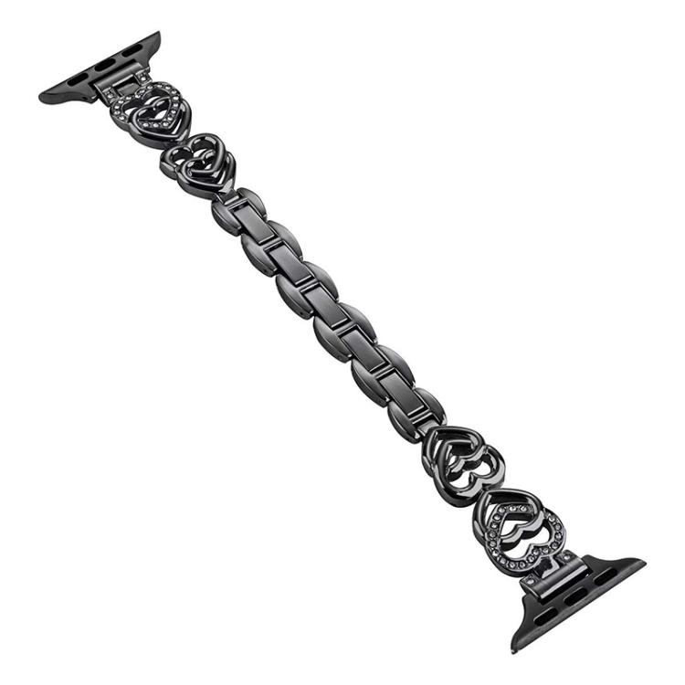 Correa de metal con doble corazón y diamantes xDfind para Apple Watch 38/40/41/S10 de 42 mm (negra)