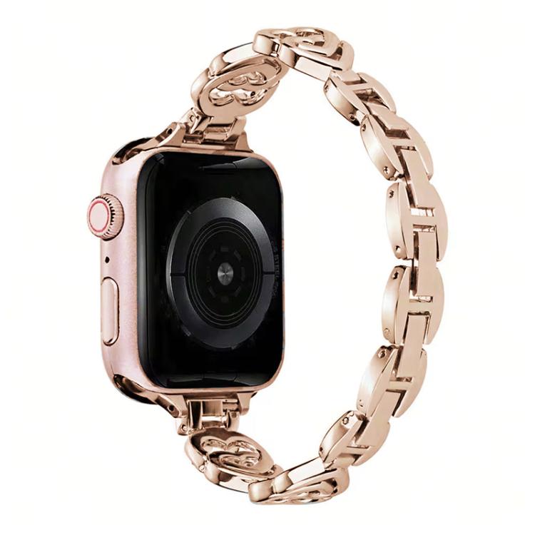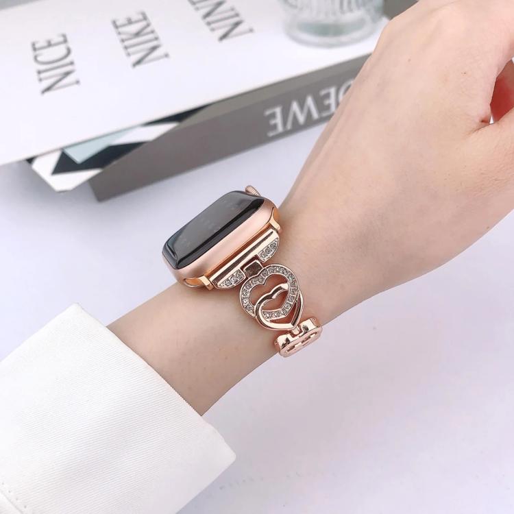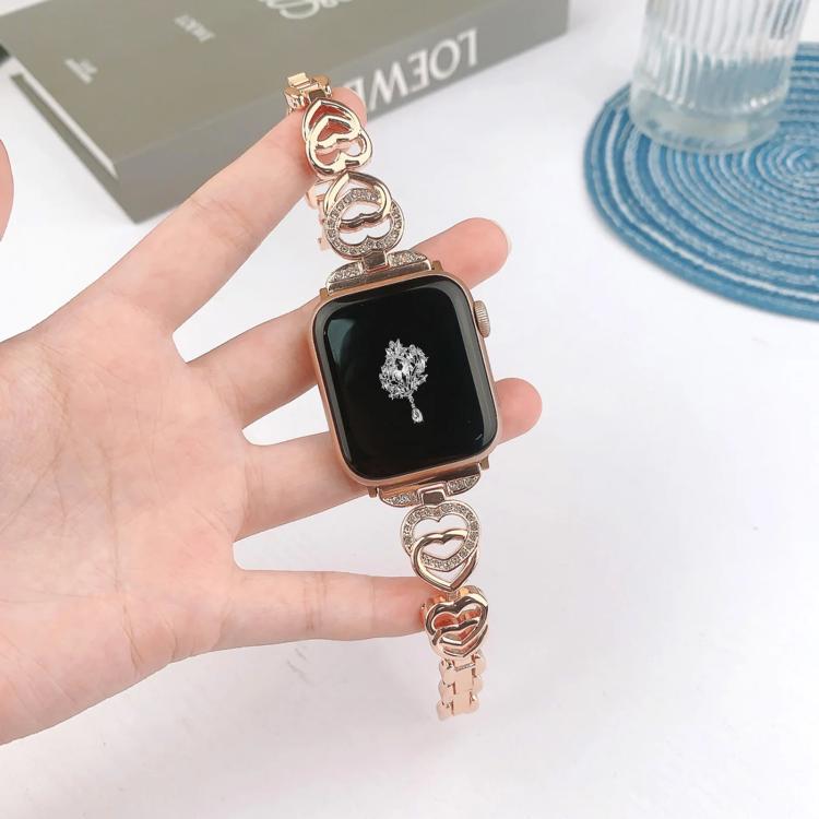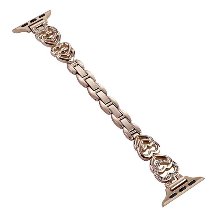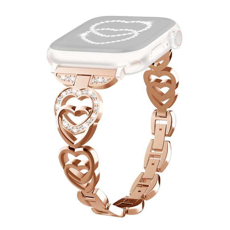 Correa de metal con doble corazón y diamantes xDfind para Apple Watch 38/40/41/S10 de 42 mm (oro rosa)