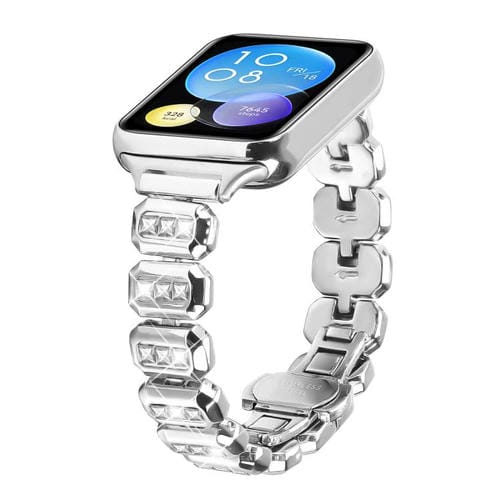 Correa de metal con hebilla de mariposa y diamantes cuadrados pequeños para Xiaomi Mi Band 8 Pro y Redmi Watch 4 (plateada)