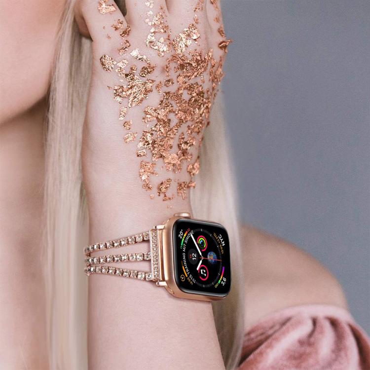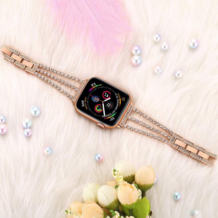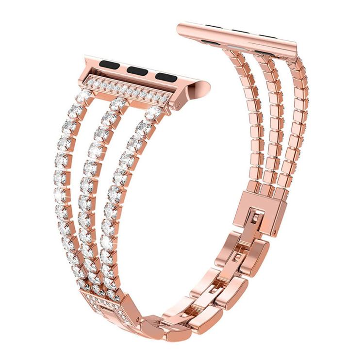 Correa de metal con tres diamantes xDfind para Apple Watch 38/40/41/S10 de 42 mm (oro rosa)