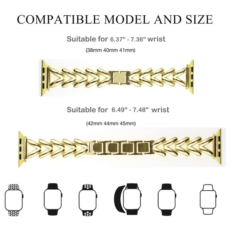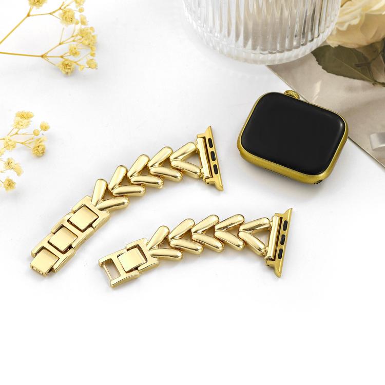 Correa de metal en forma de V xDfind para Apple Watch 38/40/41/S10 de 42 mm (dorada)
