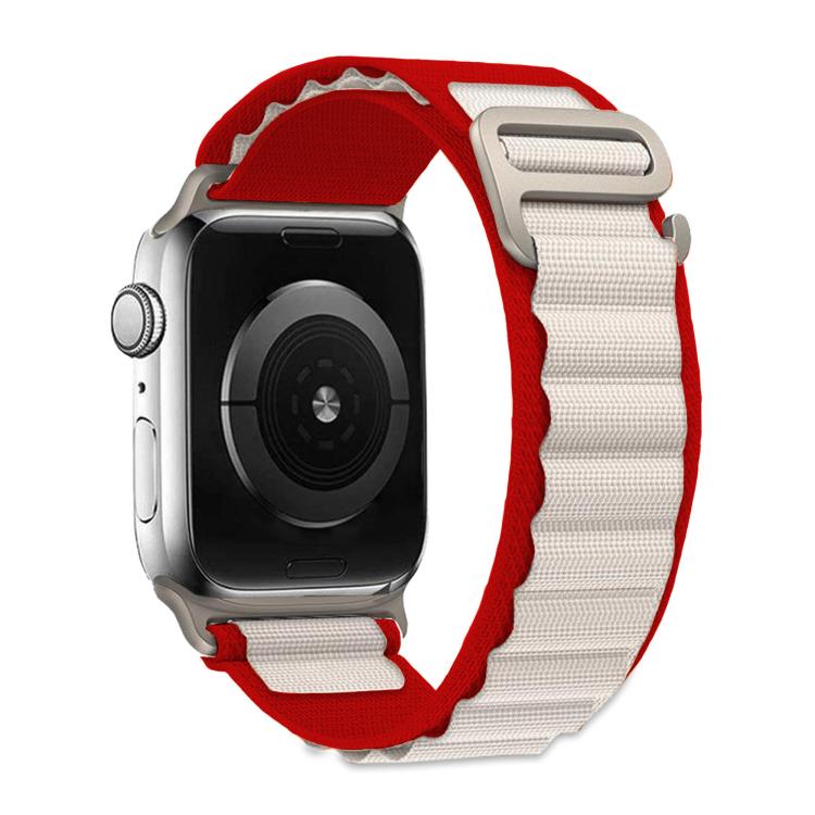 Correa de nailon con hebilla y película curva 3D para Apple Watch Series 10 de 42 mm (rojo y blanco)