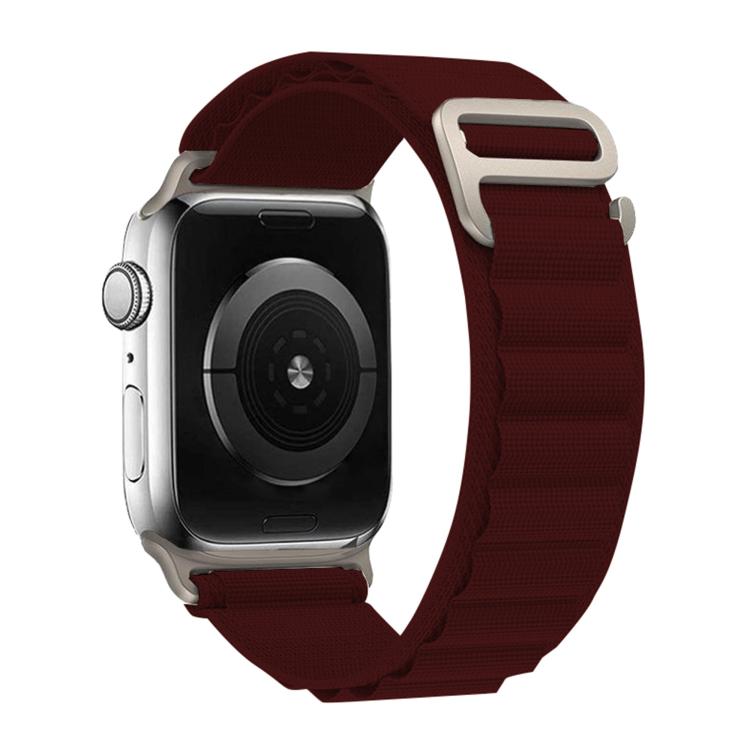 Correa de nailon con hebilla y película curva 3D para Apple Watch Series 42 mm (rojo vino)