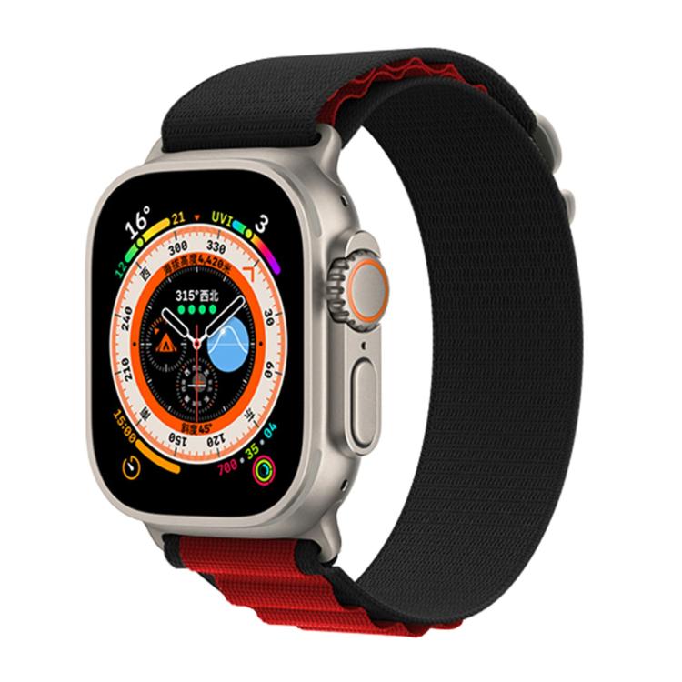 Correa de nailon con hebilla y película curva 3D para Apple Watch Series 44 mm (negro y rojo)