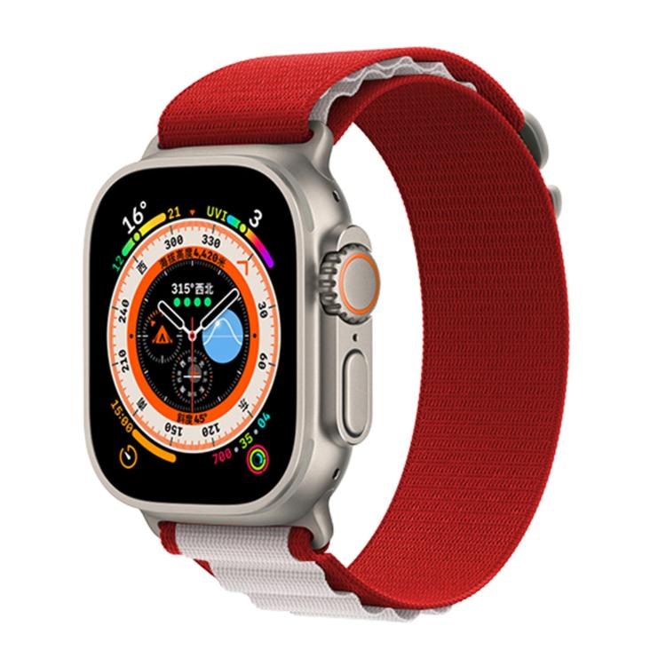 Correa de nailon con hebilla y película curva 3D para Apple Watch Series 44 mm (rojo y blanco)