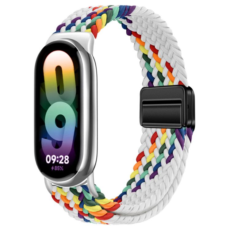 Correa de nailon trenzado con hebilla magnética para Xiaomi Smart Band 10/9/8 (Blanco Arcoíris)