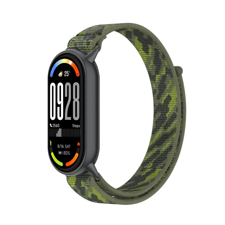 Correa de reloj con cierre de velcro integrado para Xiaomi Smart Band 10/9/8 (verde camuflaje)