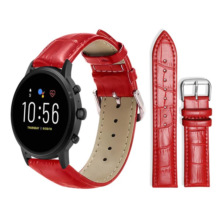 Correa de reloj de cuero con hebilla de pasador y textura de bambú de 22 mm para Fossil Gen 5 Carlyle/Julianna/Garrett xDfind (roja)