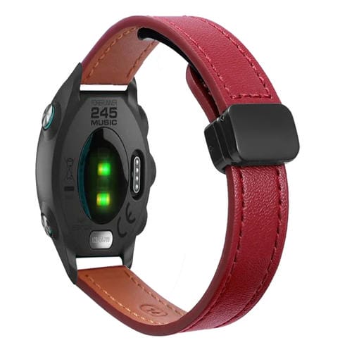 Correa de Reloj Cuero Microfibra 20mm con Hebilla Magnética para Garmin Forerunner 245 (Rojo Vino)