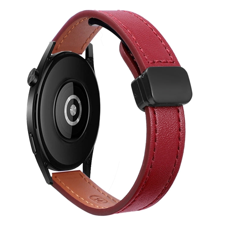 Correa de Reloj de Cuero Microfibra Magnética 22mm para Amazfit Watch GTR 4 (Rojo Vino)