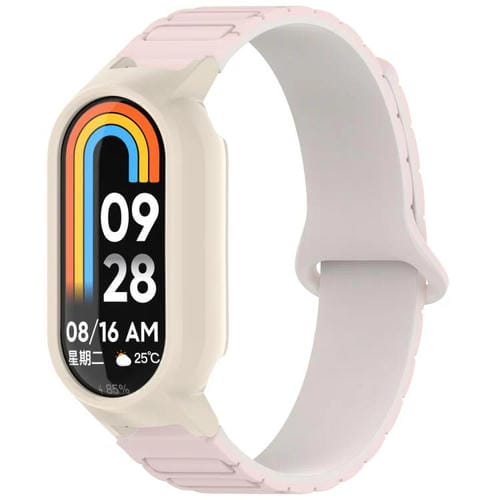 Correa de reloj de silicona magnética en forma de I para Xiaomi Smart Band 9/9 NFC PC Watch Frame (Pink Starlingt + White)