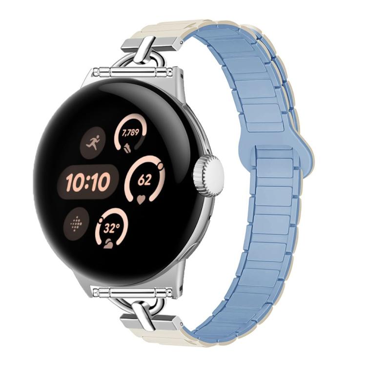 Correa de reloj magnética de silicona con tres cuentas en forma de D de 41 mm para Google Pixel Watch 4 / 3 / 2 / 1 (Blanco Niebla Azul)