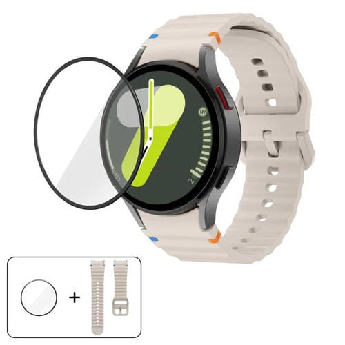 Correa de silicona con costuras onduladas y película curva 3D para Samsung Galaxy Watch7 de 40 mm (Starlight)