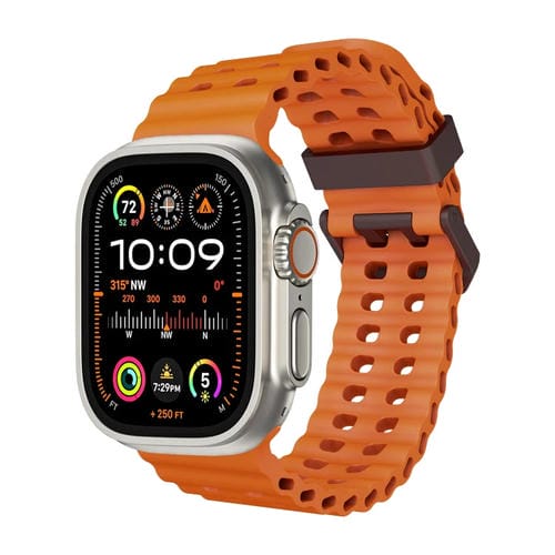 Correa de Silicona Apple Watch Ultra 2 49mm con Dos Agujeros en Forma de Océano (Naranja)