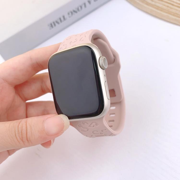 Correa de silicona con hebilla cóncava de leopardo para Apple Watch de 42 mm, 41 mm, 40 mm y 38 mm (arena rosa)