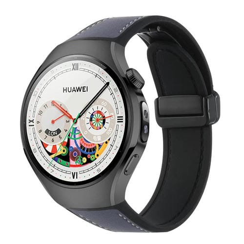 Correa de silicona híbrida con hebilla magnética para Huawei Watch 5 de 46 mm (grano de napa azul y negro)