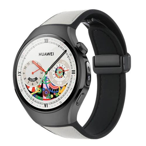 Correa de silicona híbrida con hebilla magnética para Huawei Watch 5 de 46 mm (nappa blanca y negra)