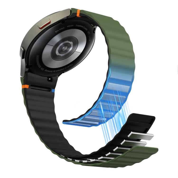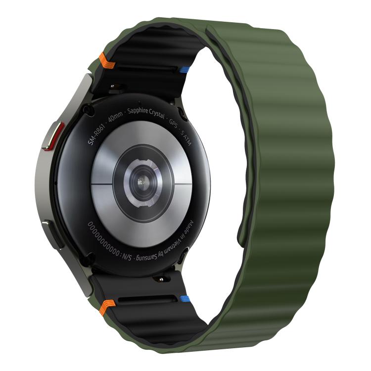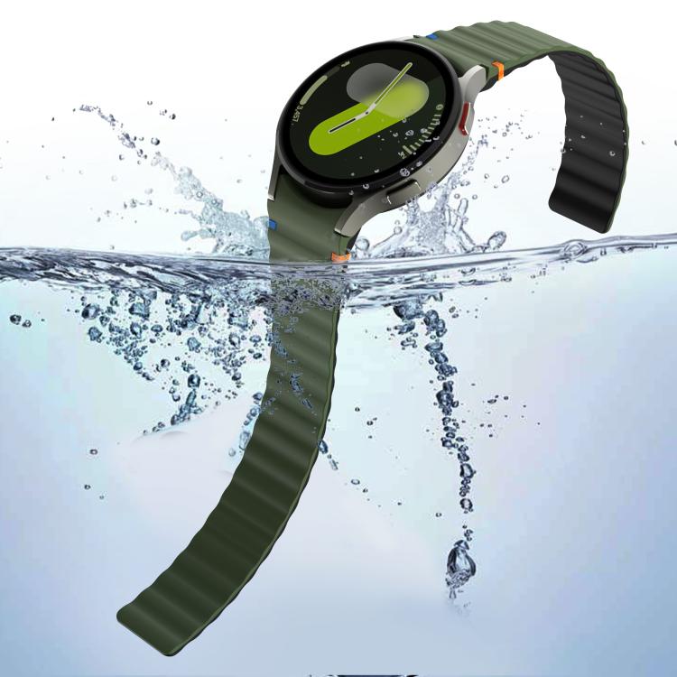 Correa de silicona magnética con costuras onduladas para Samsung Galaxy Watch 7/6/5/4 (verde militar y negro)