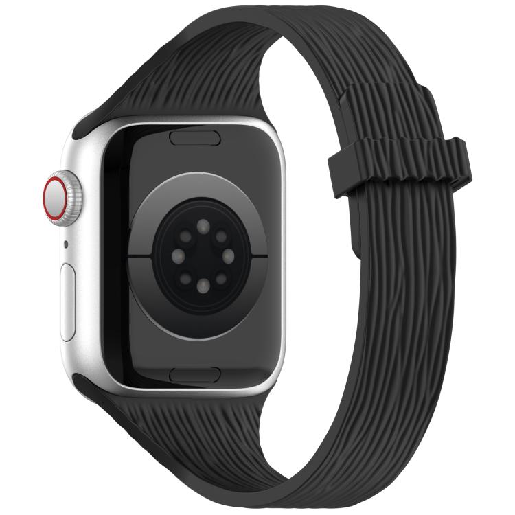 Correa de silicona magnética con diseño de veta de madera para Apple Watch de 46 mm, 49 mm, 45 mm y 44 mm (negra)