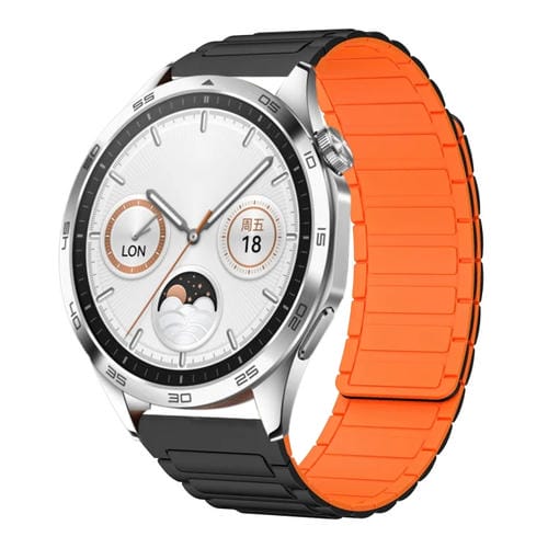 Correa de Silicona Magnética en Forma de I para Huawei Watch GT4 46mm y 22mm (Negra y Naranja)