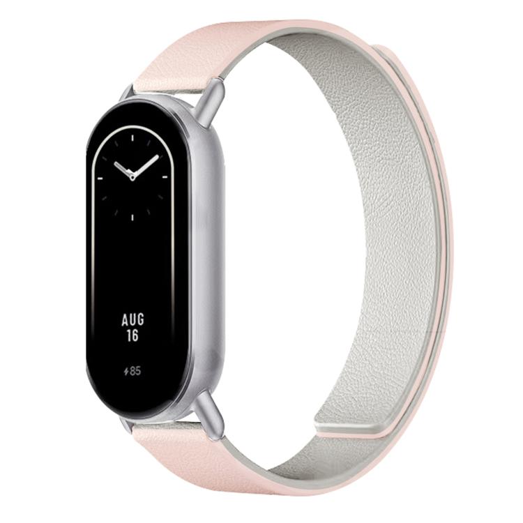 Correa de silicona magnética suave con textura de lichi para Xiaomi Smart Band 10/9/8 (rosa estrella)