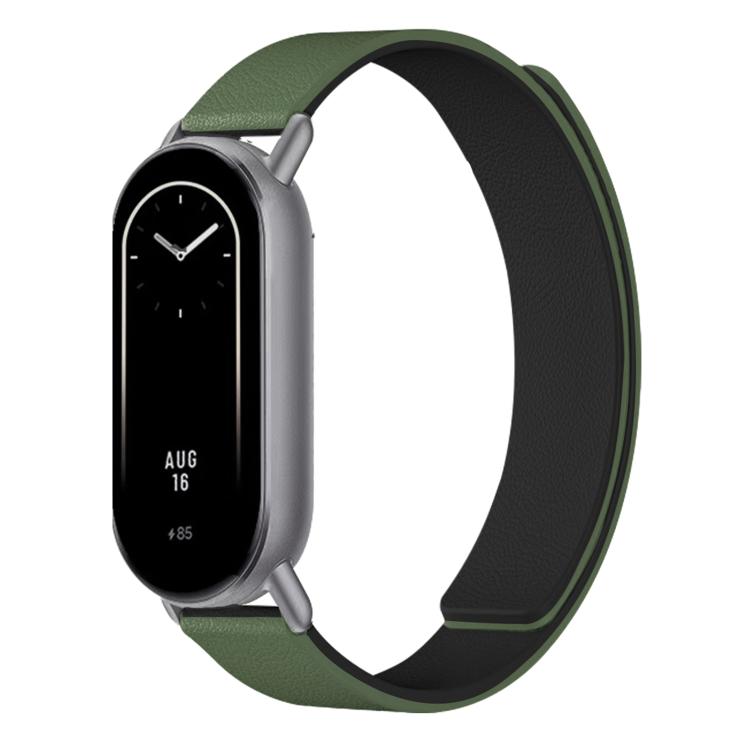 Correa de silicona magnética suave con textura de lichi para Xiaomi Smart Band 10/9/8 (verde y negro)