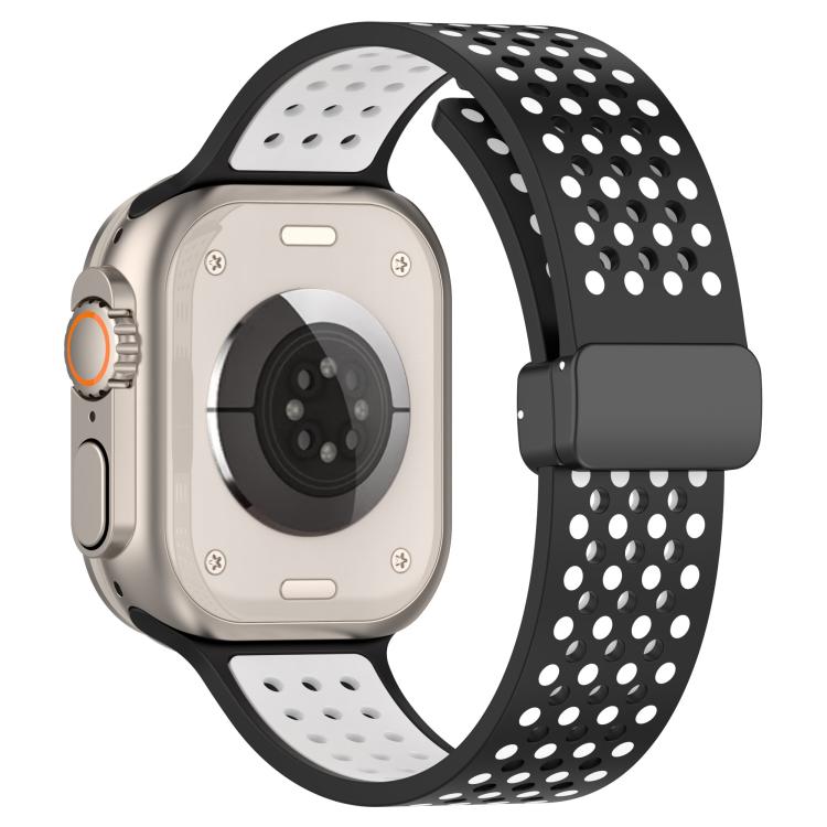 Correa de silicona transpirable con hebilla magnética para Apple Watch de 42 mm, 41 mm, 40 mm y 38 mm (negro y blanco)