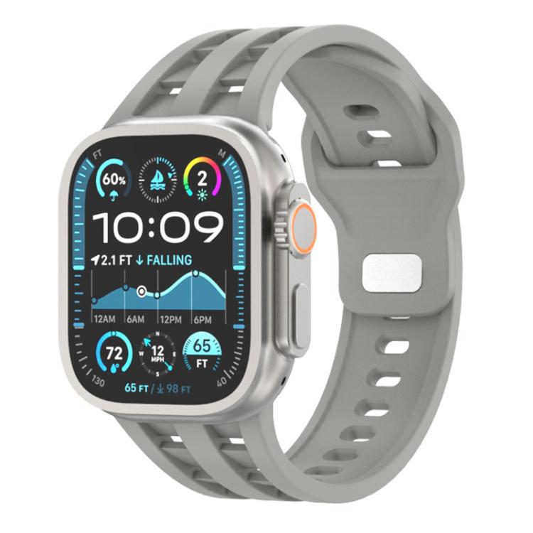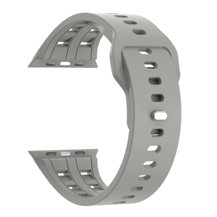 Correa de silicona transpirable de doble fila para Apple Watch de 46 mm, 49 mm, 45 mm y 44 mm (gris claro)