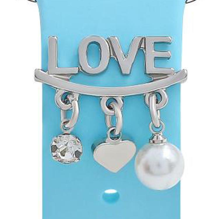 Correa de silicona universal para reloj inteligente, anillo decorativo de metal, estilo: LOVE Silver