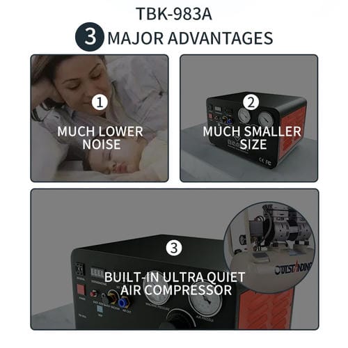 No, el TBK-983A cuenta con una bomba incorporada que elimina la necesidad de un compresor de aire externo.
