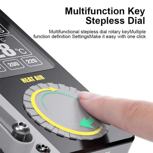 La estación de desoldar de Placa Base inteligente Mechanic Heat Air está diseñada específicamente para la serie iPhone X-15, ofreciendo una solución avanzada para la Reparación y mantenimiento de Placas Base. Este equipo profesional permite la separación y unión de capas de la Placa Base con una función inteligente de una sola Tecla, asegurando un proceso seguro y eficiente sin riesgo de explosión de estaño. Su plataforma calefactora se calienta rápidamente en 60 segundos y Completa tareas en capas en tan solo 180 segundos, gracias a un sistema de control de temperatura inteligente y protección contra sobrecalentamiento que evita daños en el dispositivo. Compatible con múltiples modelos de iPhone X-15, esta estación incluye tecnologías de Almacenamiento de datos de fallas, Conexión Inalámbrica Bluetooth/WiFi para análisis y actualización remota de software, garantizando un rendimiento óptimo en reparaciones Técnicas especializadas.